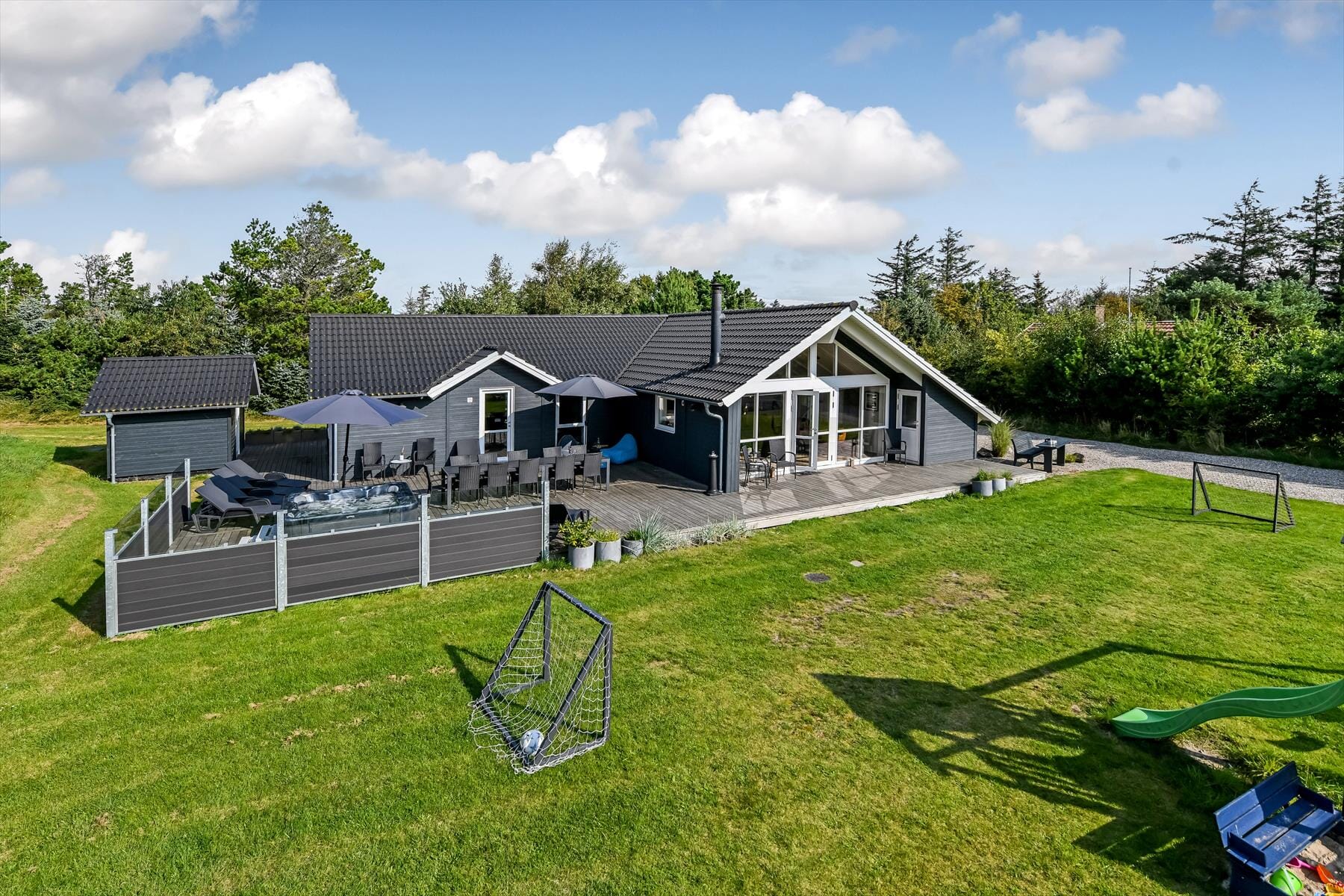 De woning heeft een oppervlakte van 160 m² en ligt op een 1.500 m² groot perceel, met o.a. een schommel en een zandbak.