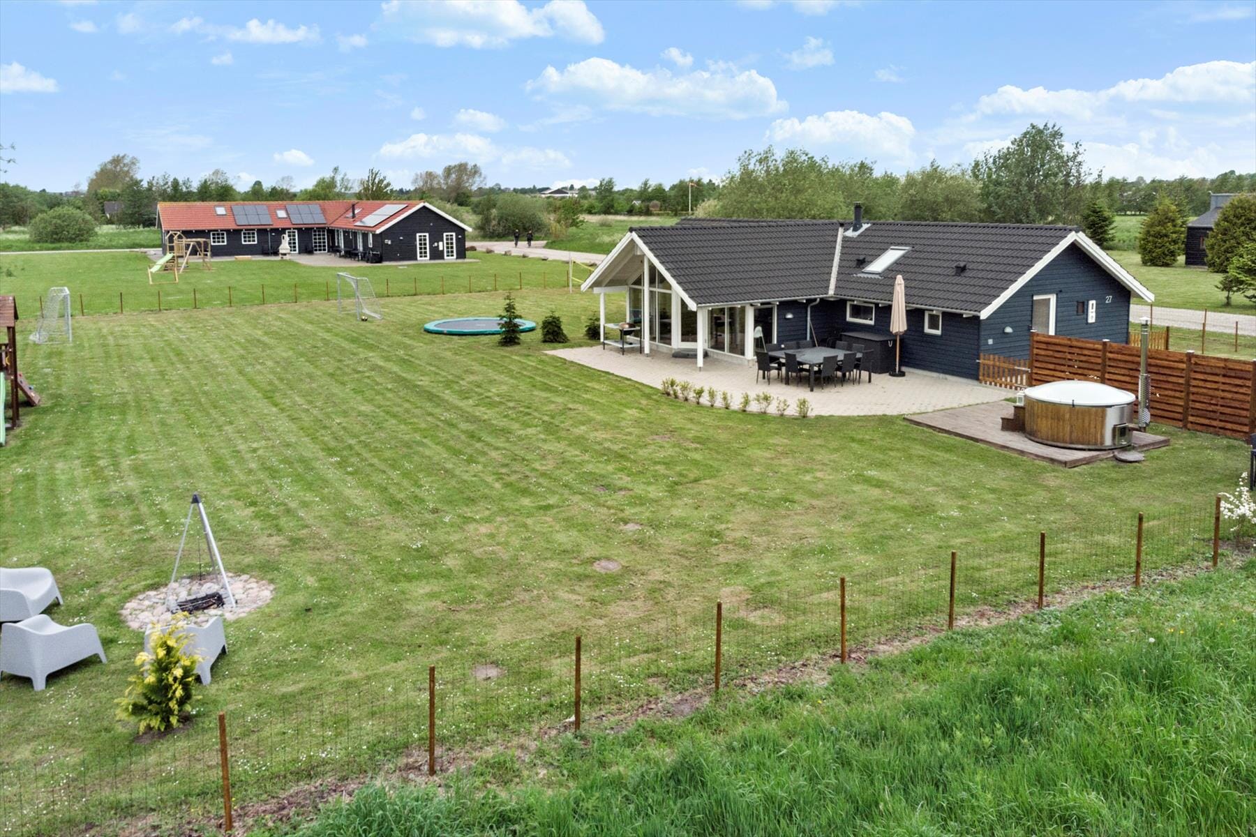 De woning heeft een oppervlakte van 138 m² en ligt op een 1.461 m² groot perceel, met o.a. een schommel en een trampoline.
