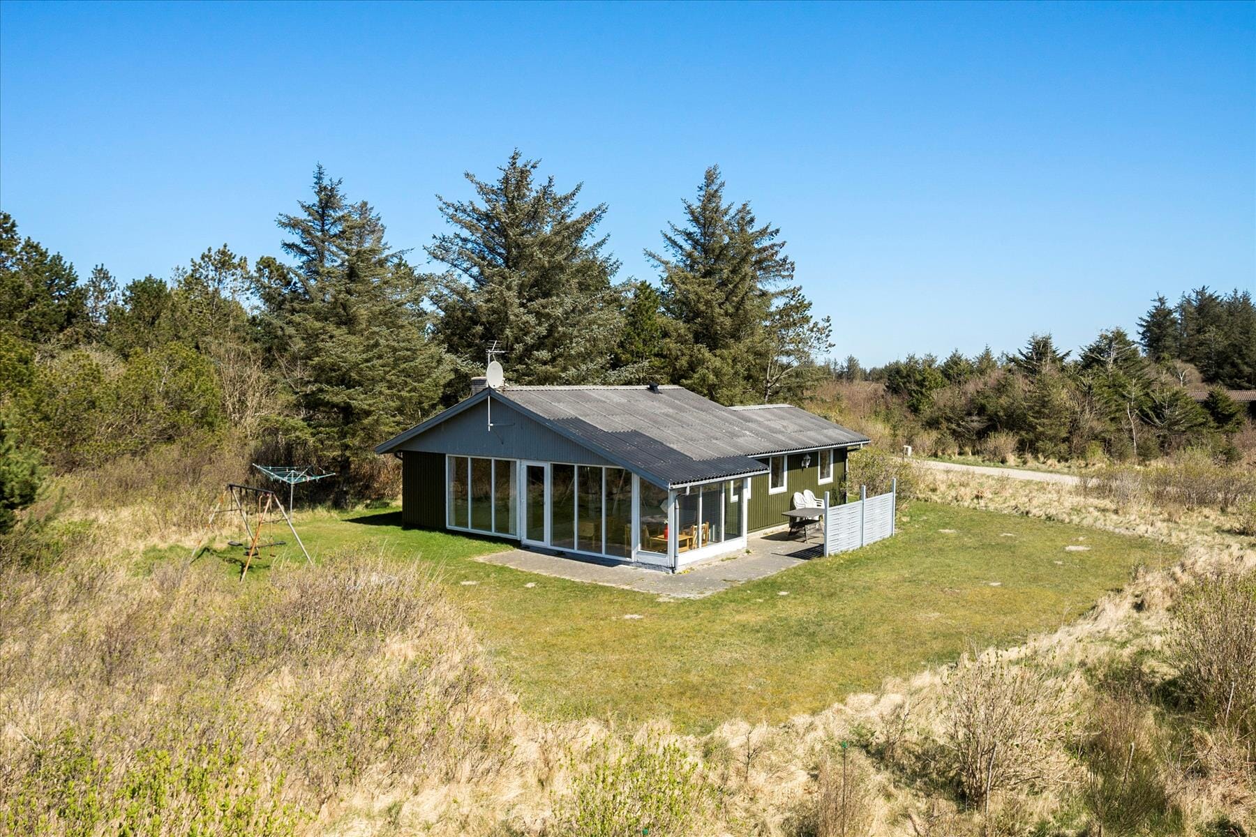De woning heeft een oppervlakte van 68 m² en ligt op een 2.200 m² groot perceel, met o.a. een schommel en een zandbak.