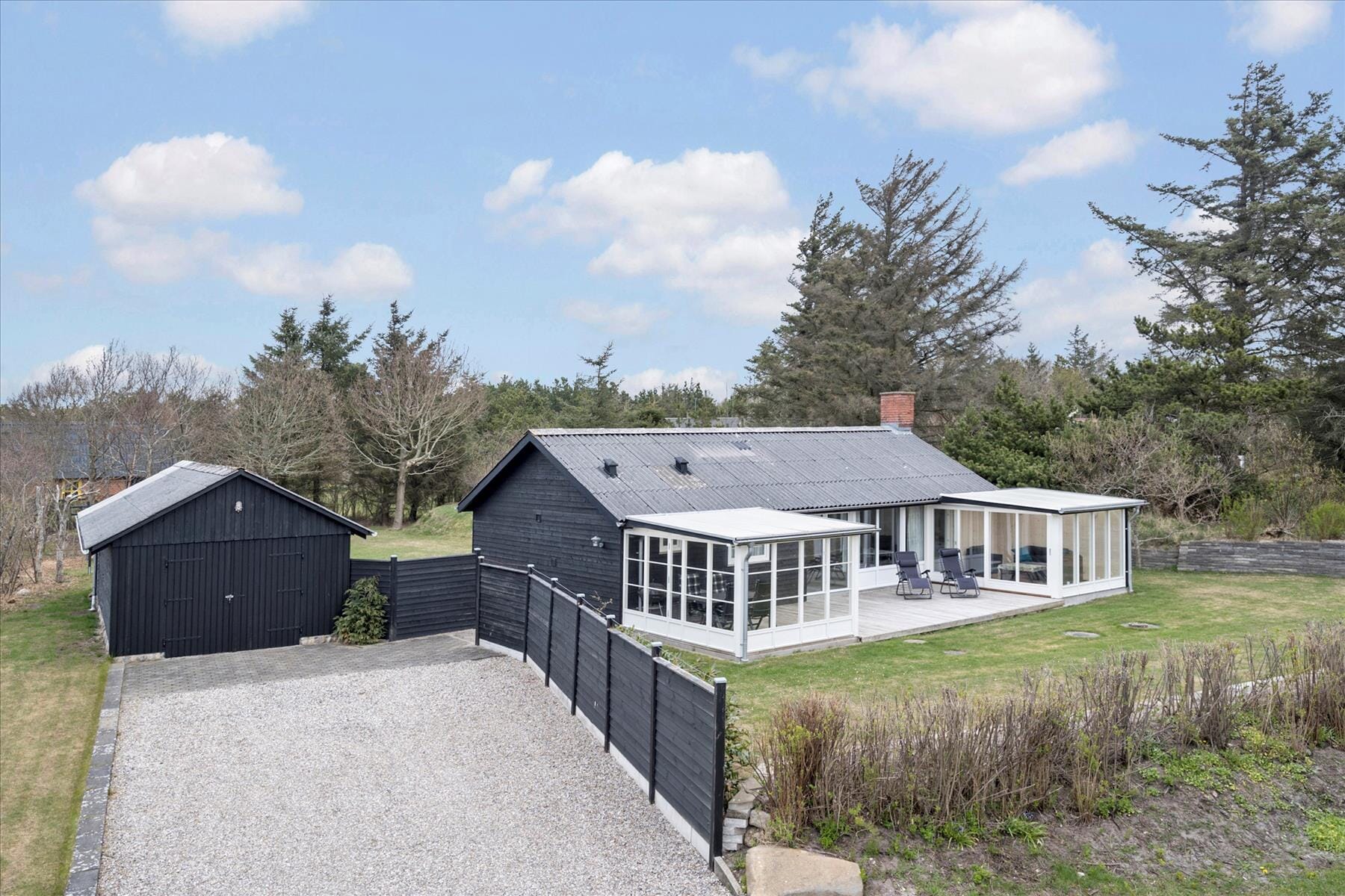 De woning heeft een op­pervlak­te van 80 m² en ligt op een 1.200 m² groot perceel, met o.a. een schommel.